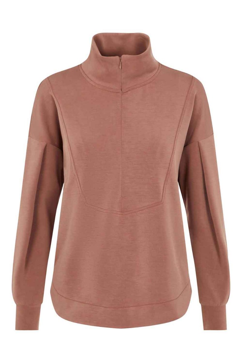 Y.A.S - Sweat - Como LS Long Zip Sweat - Cognac