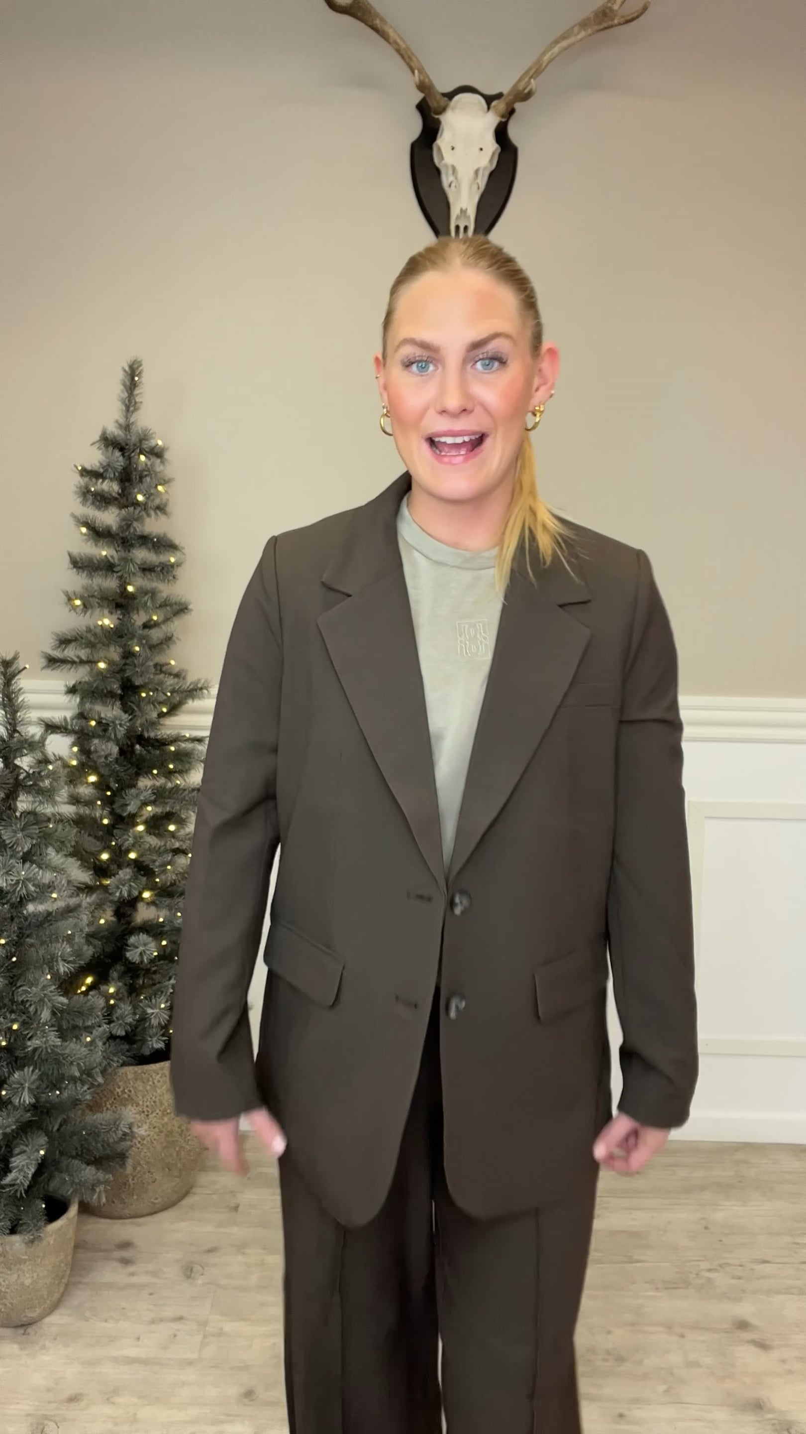 Denne vare er en klassisk, brun blazer med et tidløst og elegant udtryk. Den har en let oversized pasform, som giver et moderne og afslappet look, samtidig med at den bevarer et struktureret og sofistikeret snit. Blazeren er designet med en traditionel reverskrave, to knapper på fronten samt to frontlommer med klap og en brystlomme, der tilføjer et formelt præg. Indvendigt er den glat foret, hvilket sikrer en behagelig pasform og et pænt fald. Det neutrale brune materiale gør den alsidig og let at style til både hverdag og mere formelle anledninger.